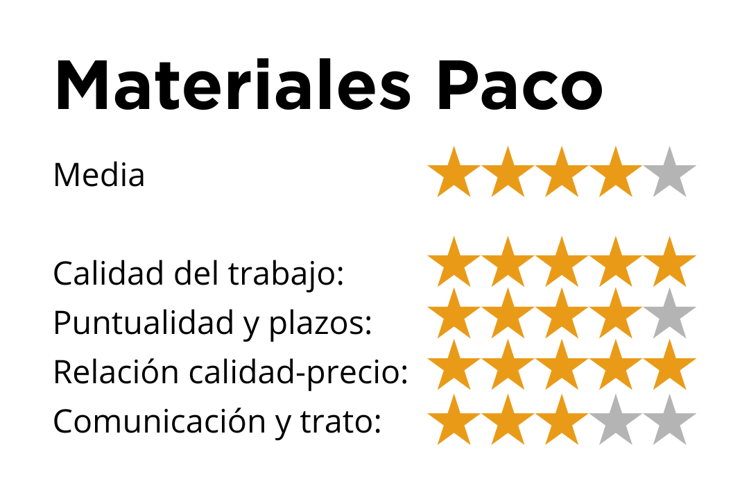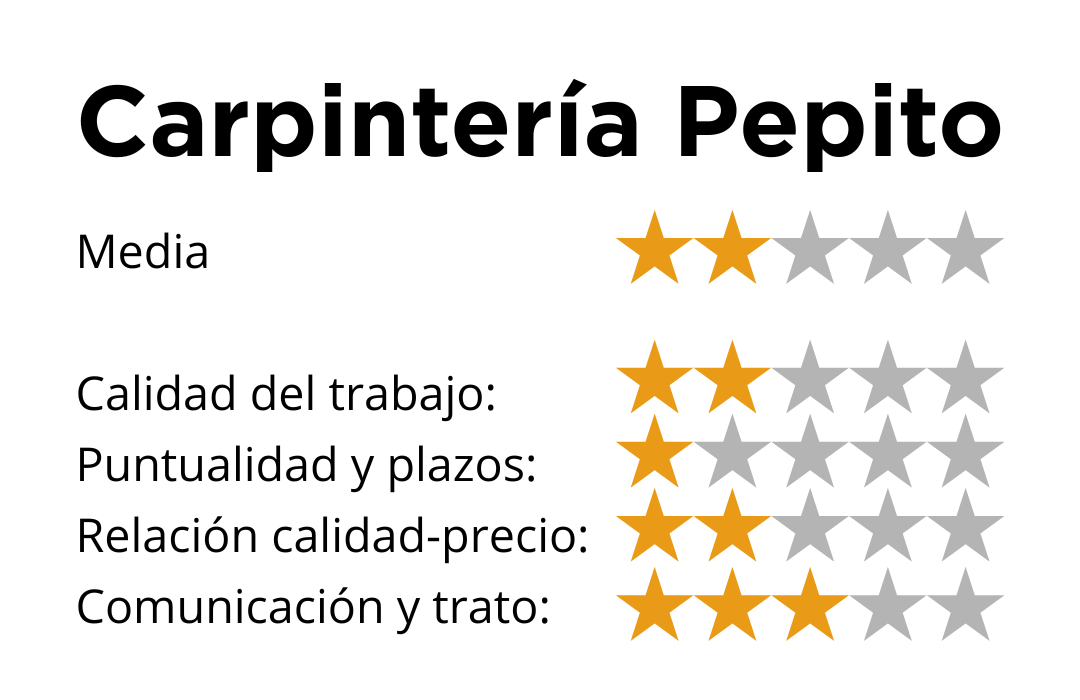 Cada ficha muestra el nombre del profesional o empresa, la puntuación en estrellas y un breve comentario sobre la experiencia.